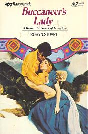 Masquerade Books #82 Buccaneer's Lady Author - Robyn Stuart Published February 1982 A buccaneer's ship was no place for a woman...The door swung open and Corinna's tine cabin was flooded with light. Hawke took a step toward her. "You little fool!" he blazed. "What the devil are you doing here?" She had hired Hawke to find her missing father and stowed away on board to ensure that he did. Now, seeing his implacable fury, she stood proudly to meet it. "You sail at my orders, Captain Hawke. I have every right to be here." (uh oh, those are fighting words...and Hawke's response?....)"Right?" he bit out savagely. "I'll show you what rights you have aboard my ship!" (Why these female characters in these books put themselves into these situations to begin with is beyond me because now she either has to jump overboard and swim for shore or be at the Captain's beck and call.) |